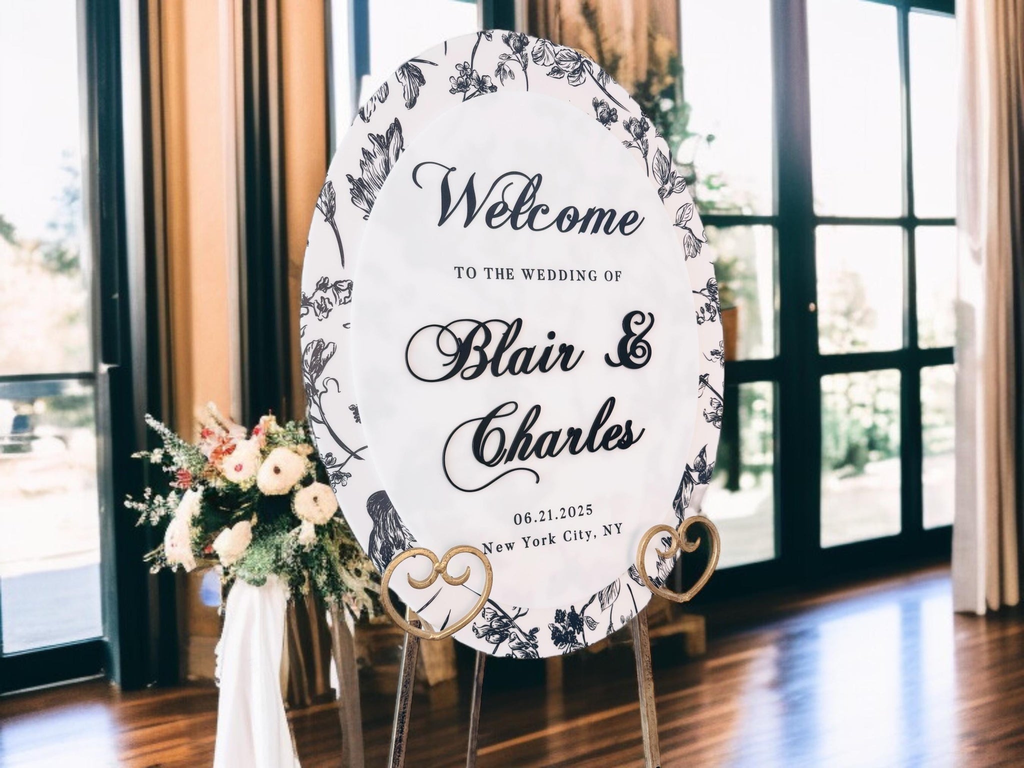 Oval Welcome Sign – Elegant Bridal Shower Sign With Floral Toile Design