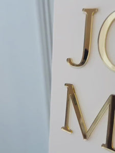 Make a grand statement at your wedding with our acrylic signs! This acrylic is a display material that is strong, moisture resistant & visually clearer than glass, not to mention shatterproof! The lettering can be selected from your unique color palette. No vinyl or stickers are used! We print on your design with high quality, UV ink, which make it a permanent design (no wrinkles, peeling or bubbles like with vinyl). It is personalized with the Bride and Groom's names and wedding date. This beautiful sign provides an easy way to add an elegant and custom touch to your wedding or next special event. Choose your custom color!