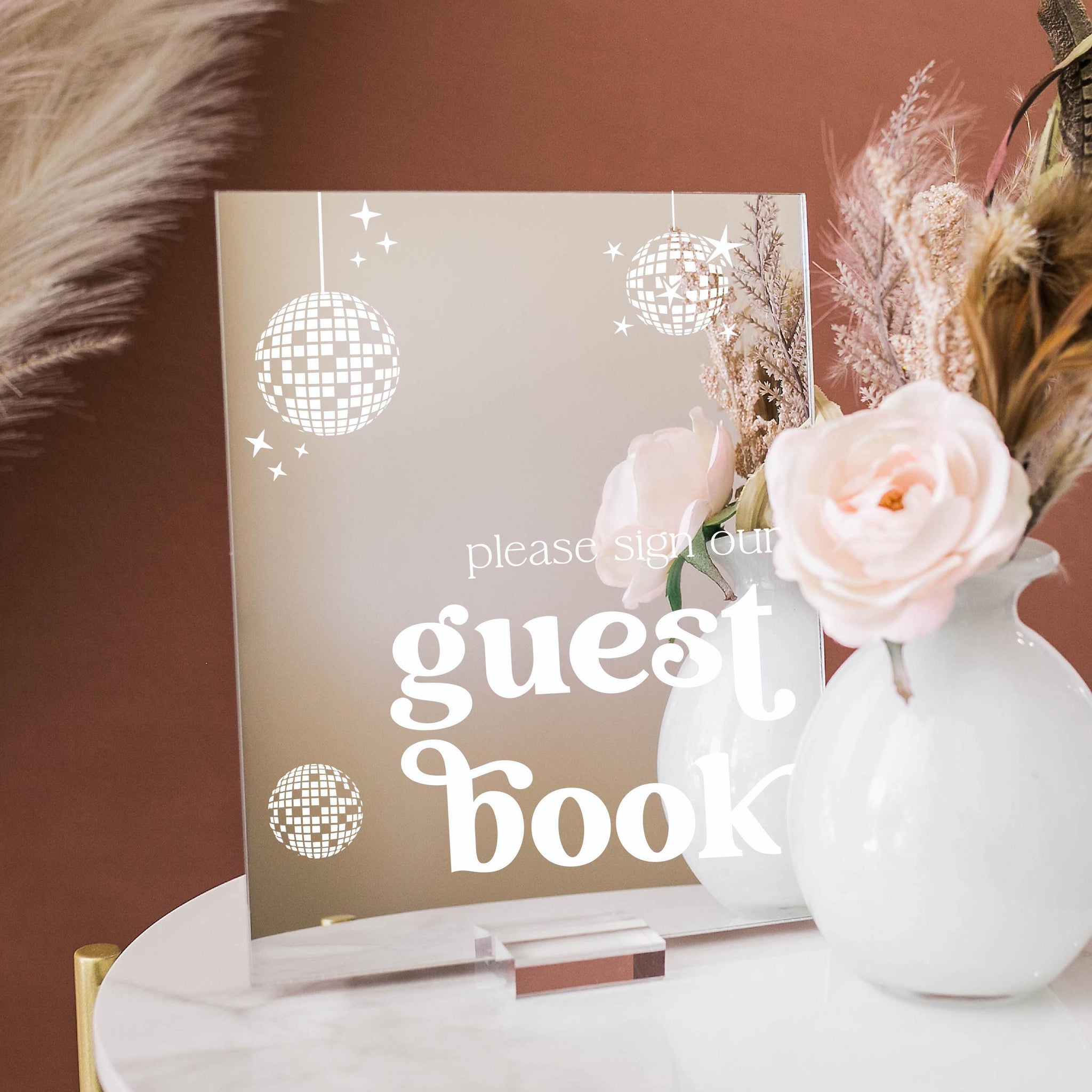 ARCH Gold Silver or Rose Gold Mirror Please Sign Our Guestbook Retro Disco Ball Wedding Reception Party Decor Guest Book Sign