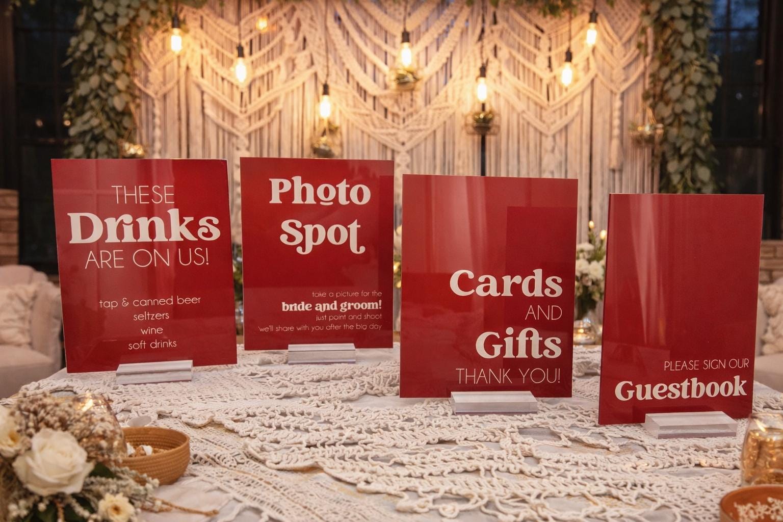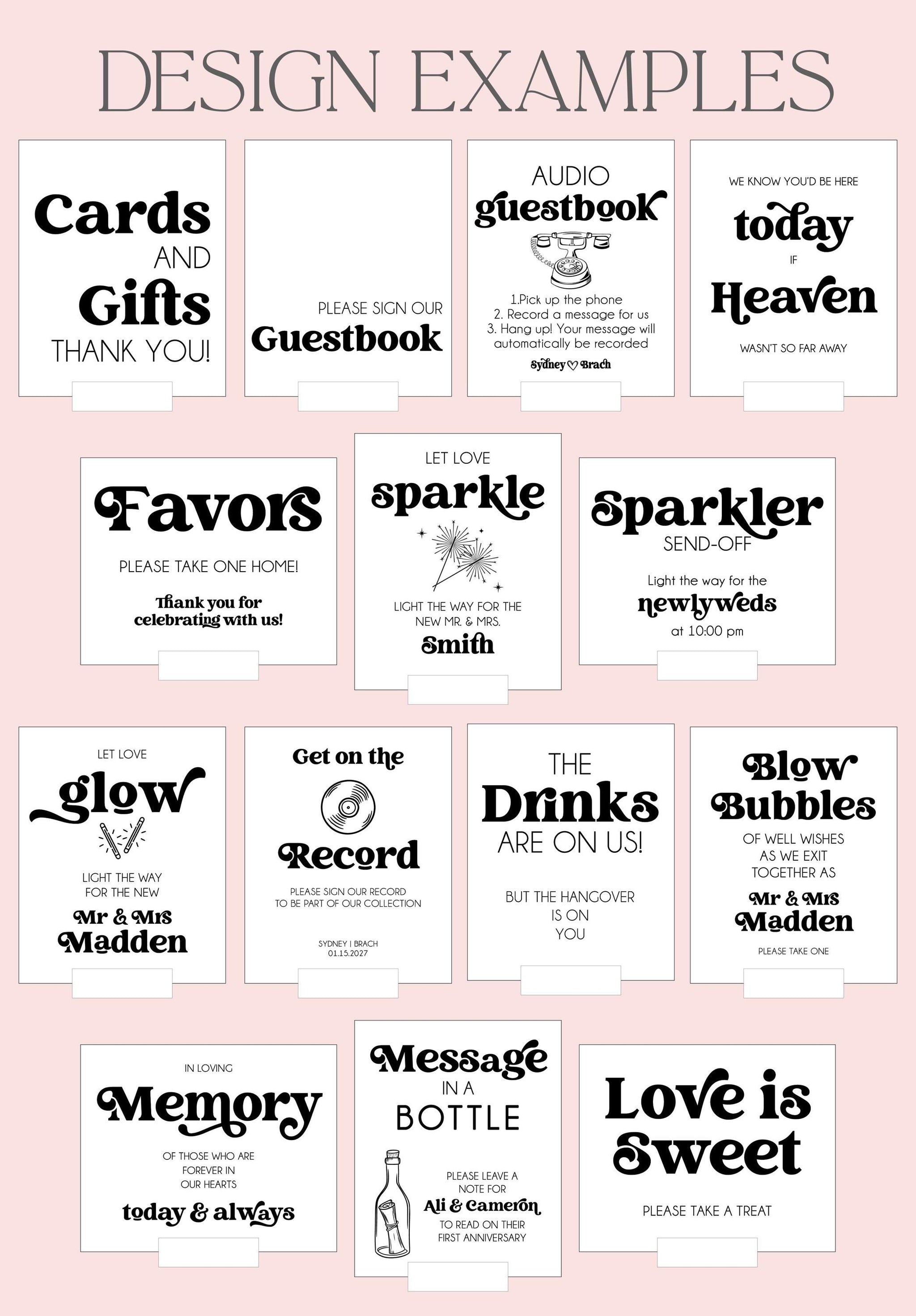 You can choose any quantity from 1-10 in this listing and have us print ANY WORDING you would like! Examples include: Please Sign Our Guestbook, Gifts and Cards, Gifts, Cards, Please Take One, Favors Signs, Open Bar, In Loving Memory, you name it!!