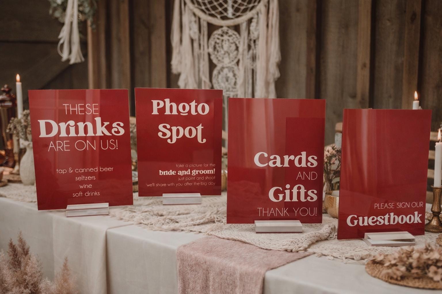 • Personalize your wedding signage with a bespoke color palette! Select from a variety of hues for these elegant 7"x9" signs. Whether you desire to harmonize with your wedding theme or create a unique aesthetic, our customizable options allow you to craft the perfect match for your special day