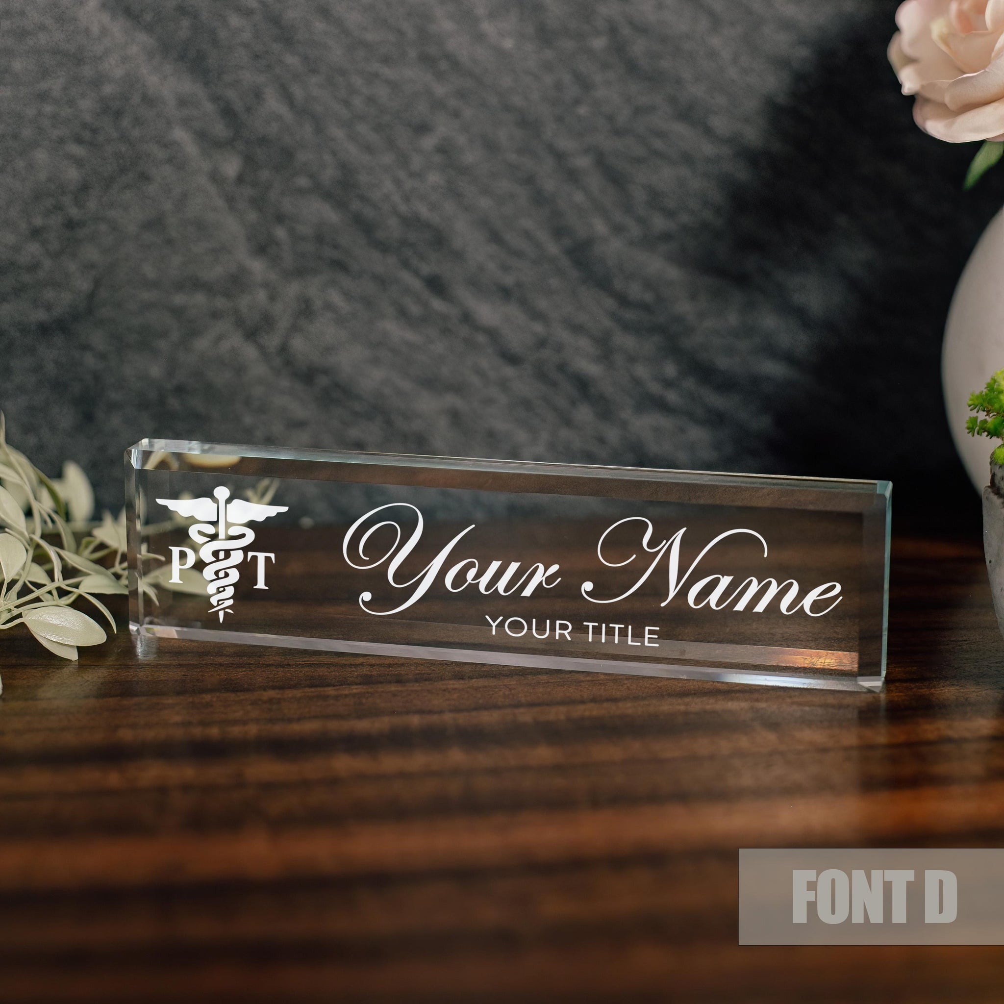Physical Therapist Glass Office Desk Name Plate