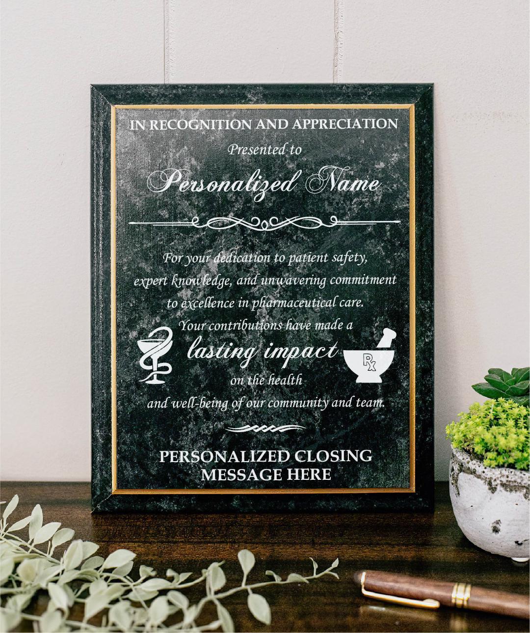 Customize with your own text, logos, or message. Whether you're recognizing a top performer or celebrating a special moment, our plaques make it memorable.